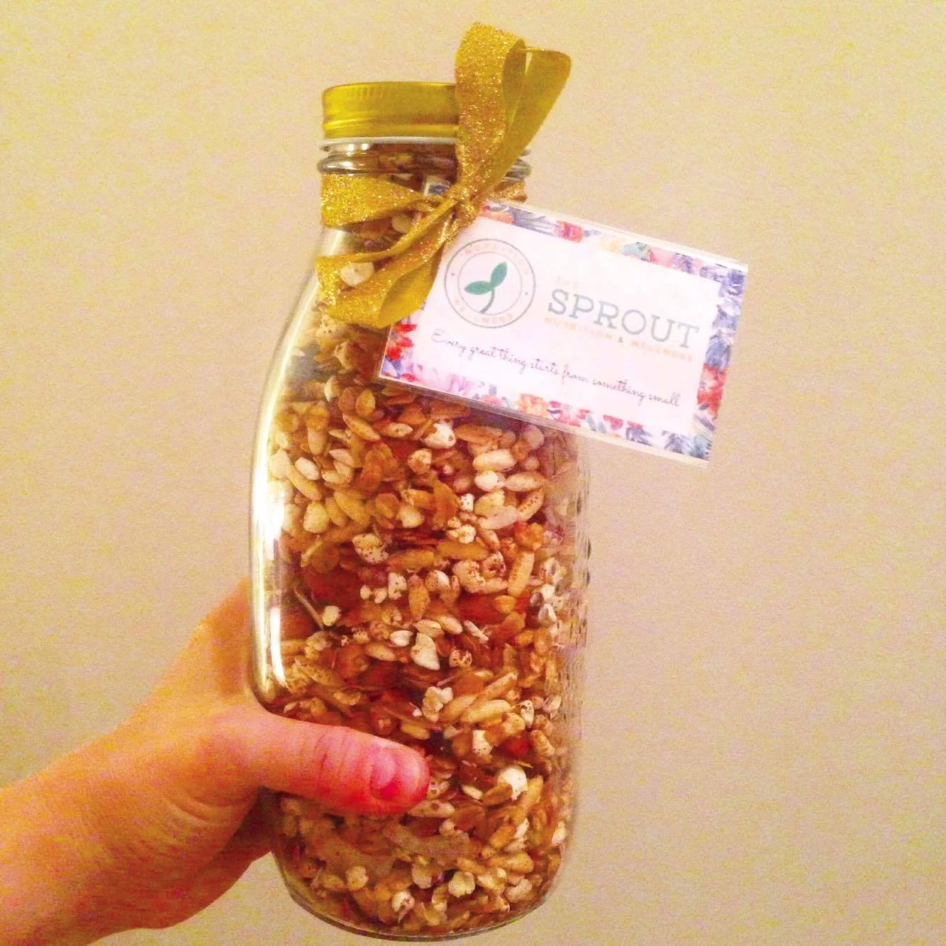 I don't know many people who don't enjoy receiving food as a gift. Homemade food, especially. It's thoughtful, rustic and usually delicious. This past Christmas, I made a massive batch of granola and bottled it up with some cute laminated labels for my extended family and friends. As is the way most of the time when I make granola and muesli mixes, I didn't measure any of the ingredients and so there was no real recipe. Cue mid-January when people started to polish off their gifted granola and started to ask me for the recipe so they could refill their bottles. So, after much procrastination and chowing through my own granola stash, I finally wrote down the measurements of my latest batch to share with you all.